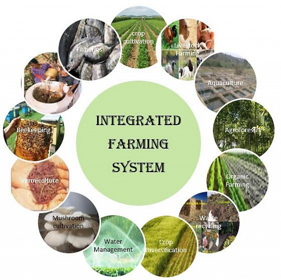 Integrated farm or Diversified farm is a type of farm that incorporates multiple agricultural activities, including crop cultivation (agriculture), raising livestock, and producing dairy products, fishery, Goats, sheeps, poultry, etc... creating a diversified and self-sufficient system. These farms often integrate activities to create synergistic benefits, such as using manure from livestock to fertilize crops.